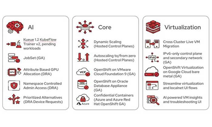 Furthermore, OpenShift continues to expand its ecosystem through validated integrations with platforms like VMware Cloud Foundation 9 and Oracle Database Appliance, ensuring customers can deploy OpenShift across the hybrid cloud.