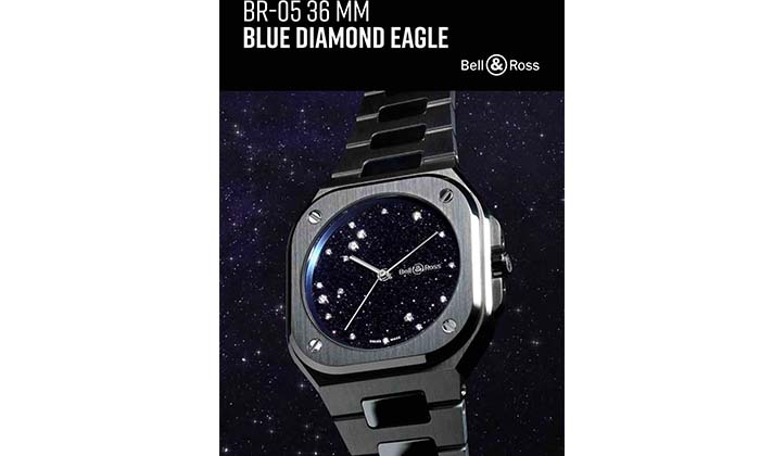 With the BR-05 36MM Blue Diamond Eagle, Bell & Ross presents a watch that is both contemporary and precious. The geometric rigour of the square case meets the delicacy of a deep blue aventurine dial, set with diamonds that recreate the Aquila (Eagle) constellation. A creation that blends femininity, power, and poetry, reflecting the Maison’s expertise in both watchmaking and fine jewelry.