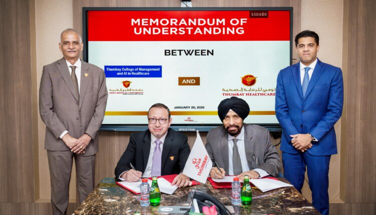 Speaking on the occasion, Prof. Manda Venkatramana, Chancellor, Gulf Medical University, said: “This partnership reflects Gulf Medical University’s core philosophy: education must lead to impact. By integrating Thumbay Healthcare directly into the learning journey, we are ensuring that our students don’t just earn degrees, they build careers. This MoU transforms education into employability, and classrooms into gateways to the healthcare industry of the future.” Prof. Amir Zeid, Dean of Thumbay College of Management and AI in Healthcare, added: “This collaboration will pave the way to synchronize academic excellence with real-world clinical expertise, creating a dynamic laboratory for healthcare innovation. We are moving beyond traditional instruction to ensure our students graduate as AI-fluent leaders ready to solve the immediate challenges of the modern healthcare industry.”