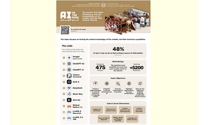 The UAE’s Artificial Intelligence, Digital Economy, and Remote Work Applications Office announced that Google Gemini has ranked first in the “AI in the Ring” Index, the world’s first benchmark designed to evaluate how effectively AI language models reflect Emirati culture, dialects, traditions, and national values through a challenge centered on cultural intelligence within the UAE context.
